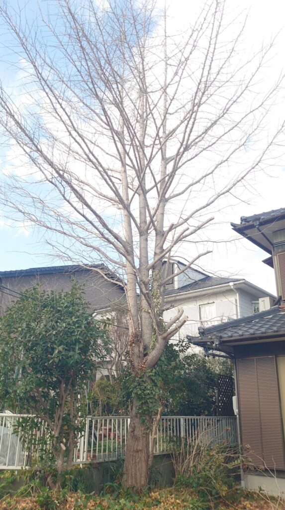 イチョウの大木の伐採は葉が無い冬の今です|愛知県豊川市・新城市・蒲郡市等東三河方面の参考事例